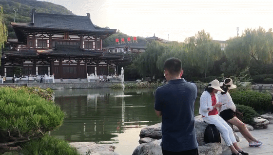 当《我和我的祖国》那优美的歌声响起时,立刻就吸引了众多的游客驻足,纷纷从四面八方聚集到了九龙湖广场上,